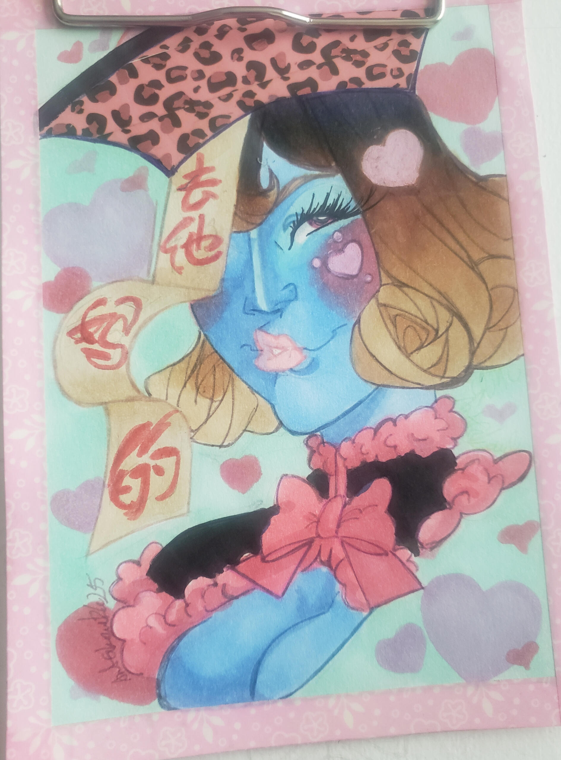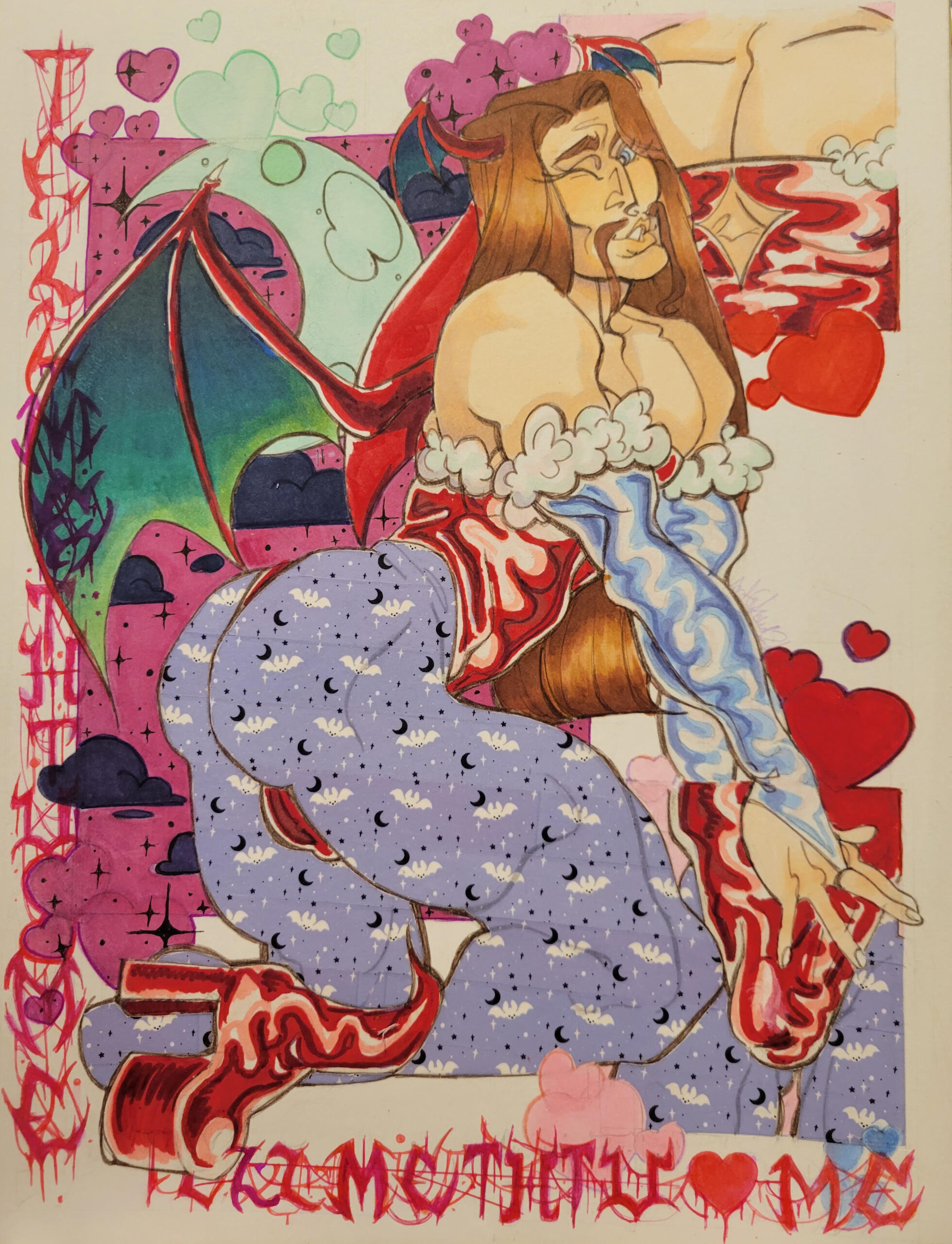 Hi! I'm Artghouul, your local queer, pastel-metalhead goth! I love pastel colors and draw cute things with spooky messages! I love to add washi tape to my drawings because it looks pretty (plus I hate rendering fabric.) I'm really nice, so don't be afraid to approach me! I'm currently an illustration major at CSULB, I hope to be a comic book artist or a book illustrator.